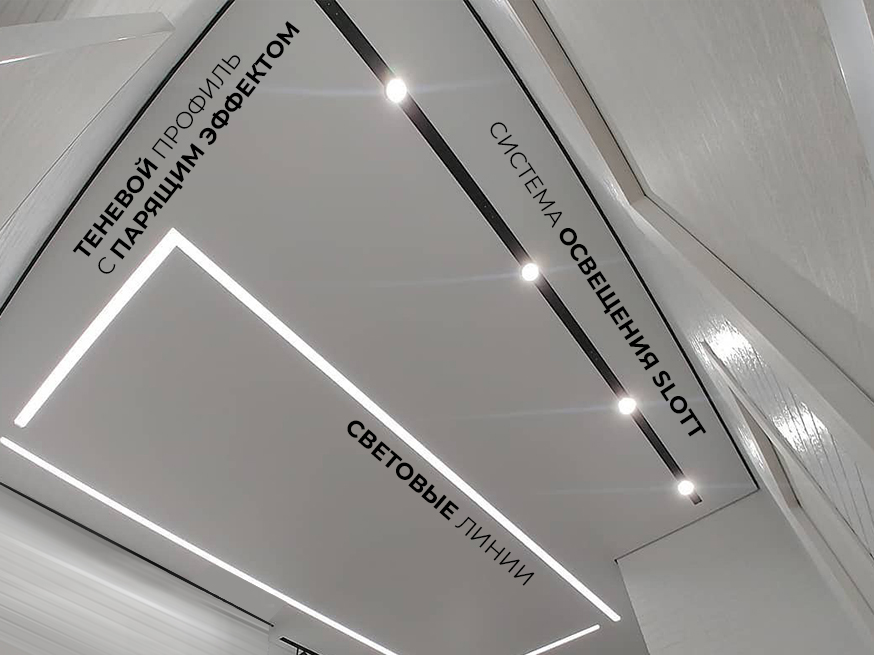 Световые линии на чёрном потолке 6 м²