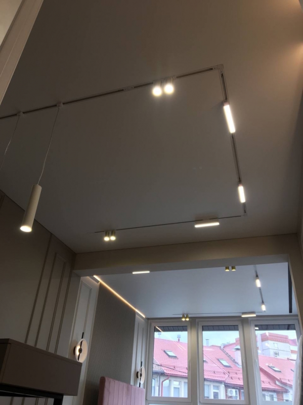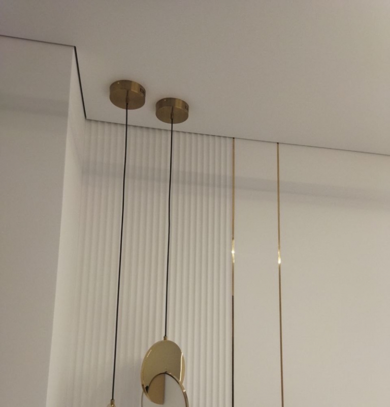 Двухуровневый потолок смотрится очень по-разному. Есть вариант установить его из полупрозрачной пленки с внутренней подсветкой, чтобы он выполнял роль светильника. Если вы любите минималистичные решения, выбирайте монтаж без щелей и стыков.